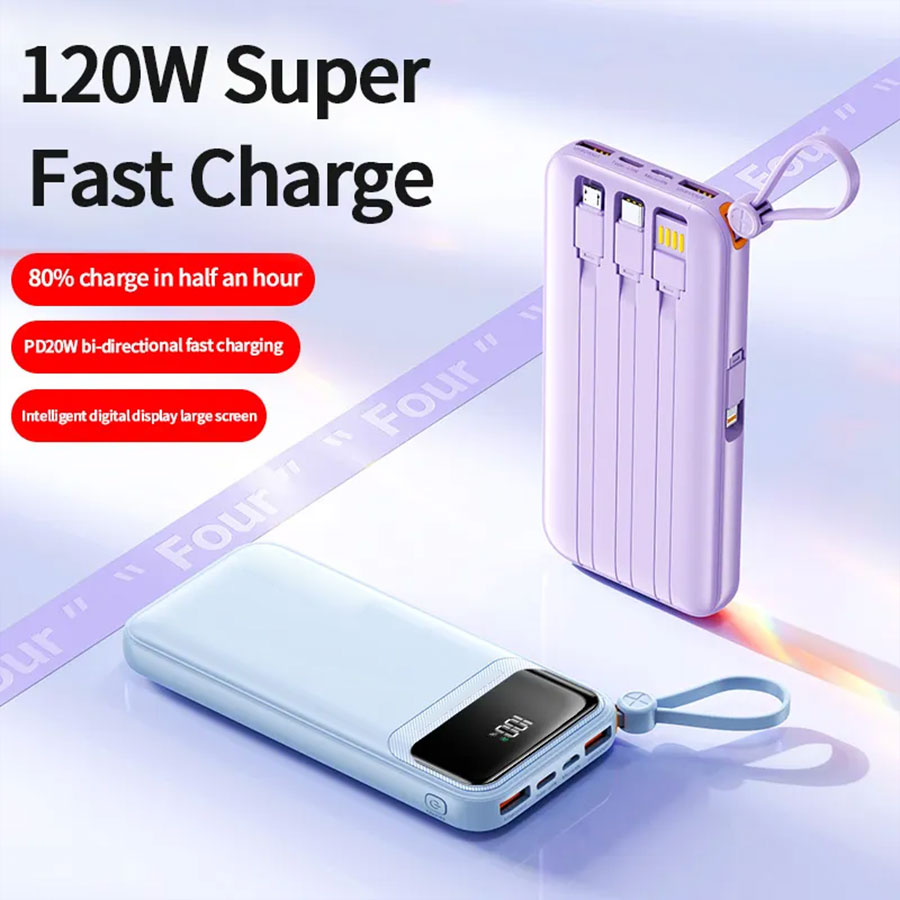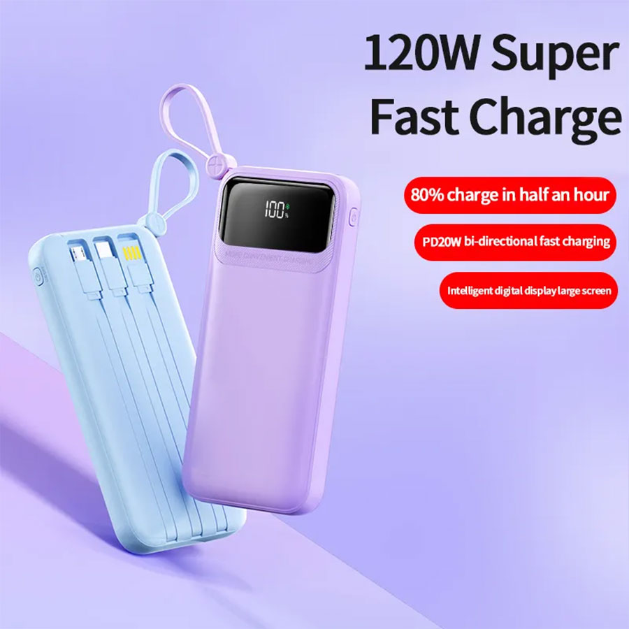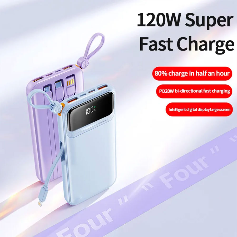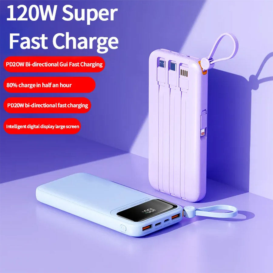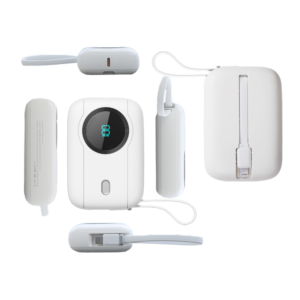 Crafted from durable PC ABS material, our power bank isn’t just about performance; it also boasts a sleek and modern design available in six attractive colors: White, Black, Blue, Purple, Beige, and Rose Red. Its built-in cable and digital display make it remarkably user-friendly. Monitor your battery levels effortlessly and never be caught off guard when you need power the most.