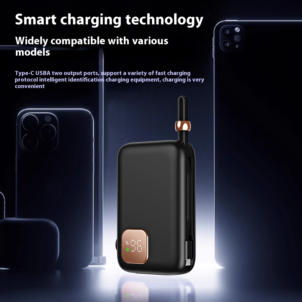 This smart power bank boasts multiple output formats to cater to all your devices. It features a USB output capable of delivering power in various voltages: 4.5V-5A, 5V-4.5A, 5V-3A, 9V-2A, and 12V-1.5A. Alongside these options, the Type-C line output is equally proficient with identical voltage capabilities. Additionally, when you need to charge an Apple device, our Lightning cable output provides power at 5V-2.1A, 9V-2.22A, and 12V-1.67A. With this power bank, you’ll always have the right charging option at your fingertips.