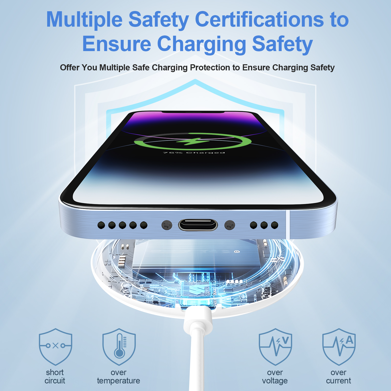 The 15W 3-in-1 Wireless Charger stands out with its unique design and multiple charging outputs: 15W for fast charging, along with lower power options of 10W and 7.5W for various devices. Constructed from high-quality ABS material, it is designed for durability while maintaining a sleek look. This innovative charger is perfect for home, office, or travel, weighing only 53g, making it lightweight and portable.