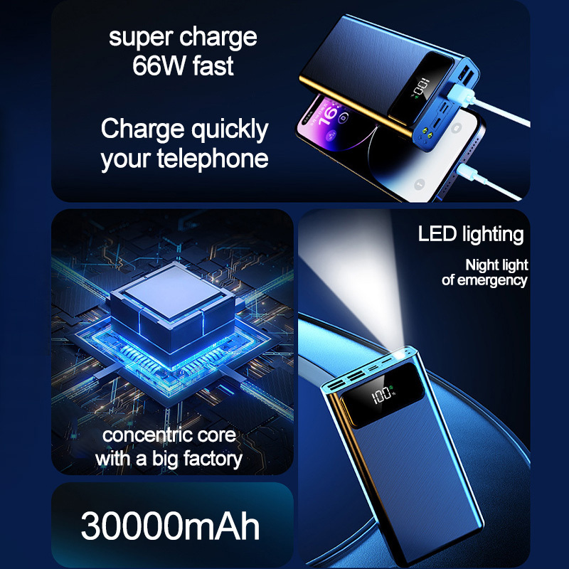 Introducing the LCD Digital Power Bank with an impressive 30000mAh capacity, designed to keep your devices charged and ready for action whenever you need them. Whether you’re on a long road trip, camping in the great outdoors, or simply out and about in the city, this power bank ensures you never run out of juice for your smartphones, tablets, and other electronic devices. Choose from sleek black or classic white colors to match your style.