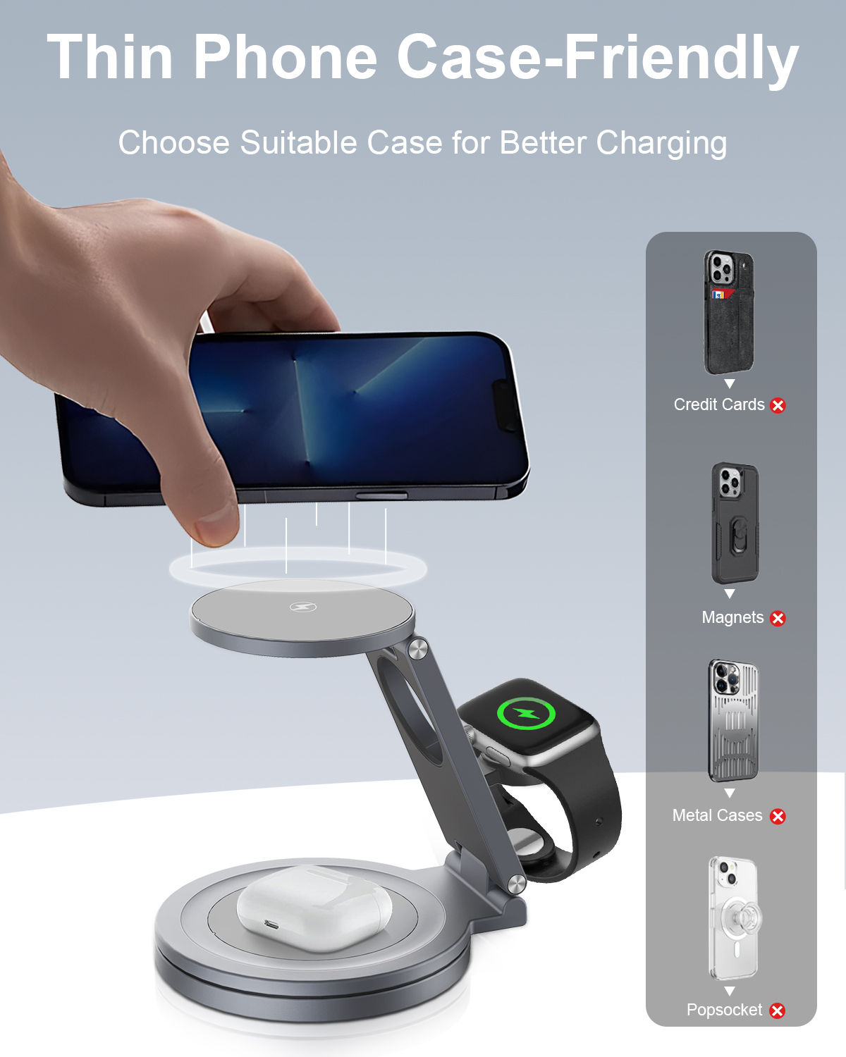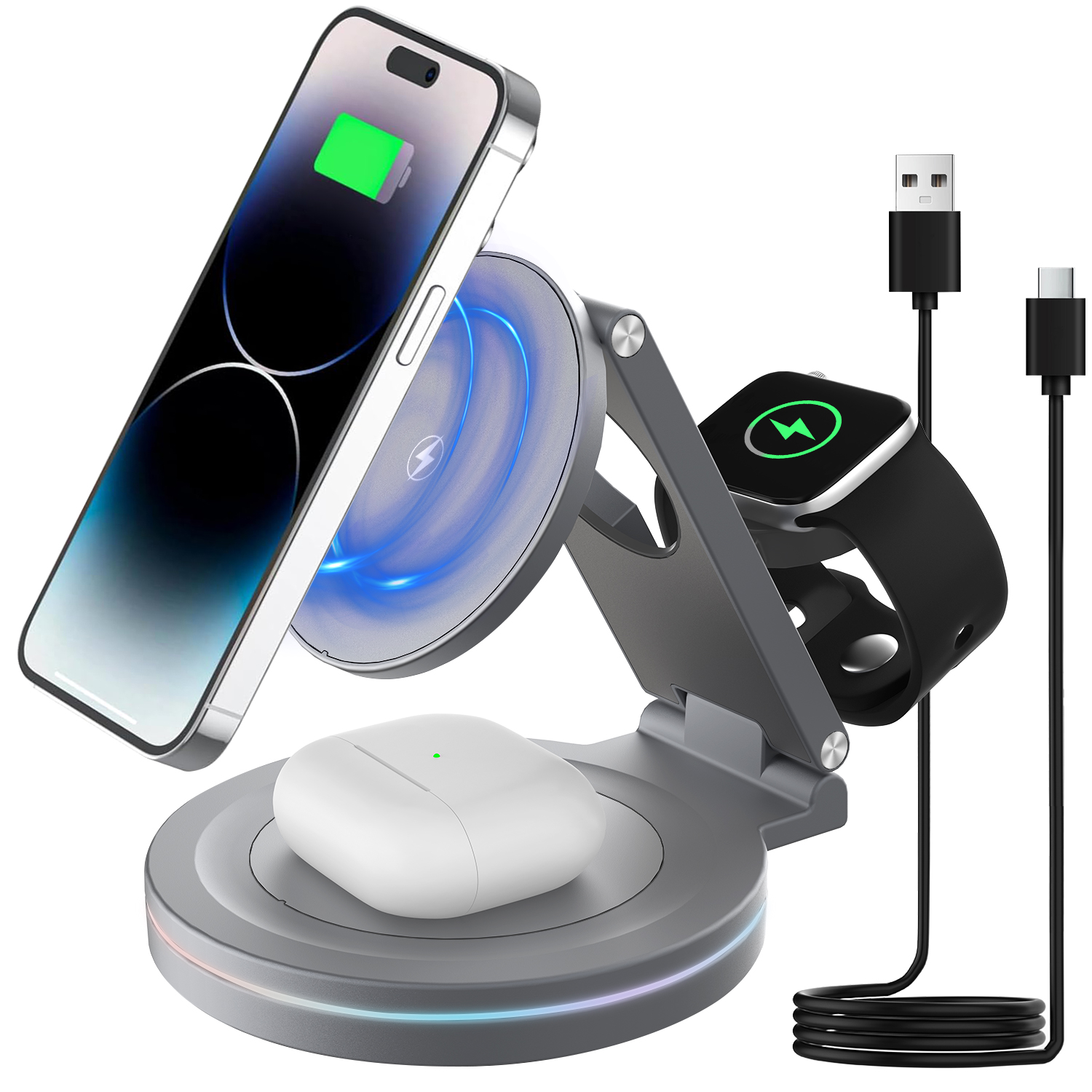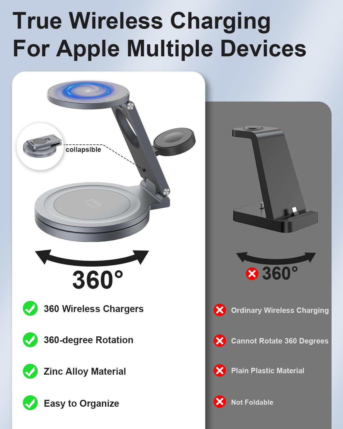 Make the switch to the QI2 Aluminum Alloy 360 Degree Rotating Wireless Charger today and embrace a more organized approach to charging. Efficiency, style, and safety come together, making this charger the ultimate accessory for your gadget needs. Upgrade your charging game and enjoy a wireless future!