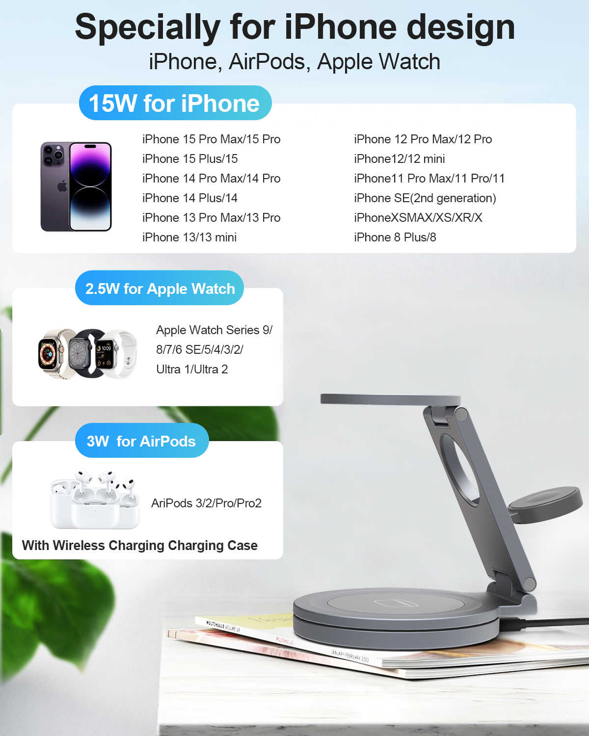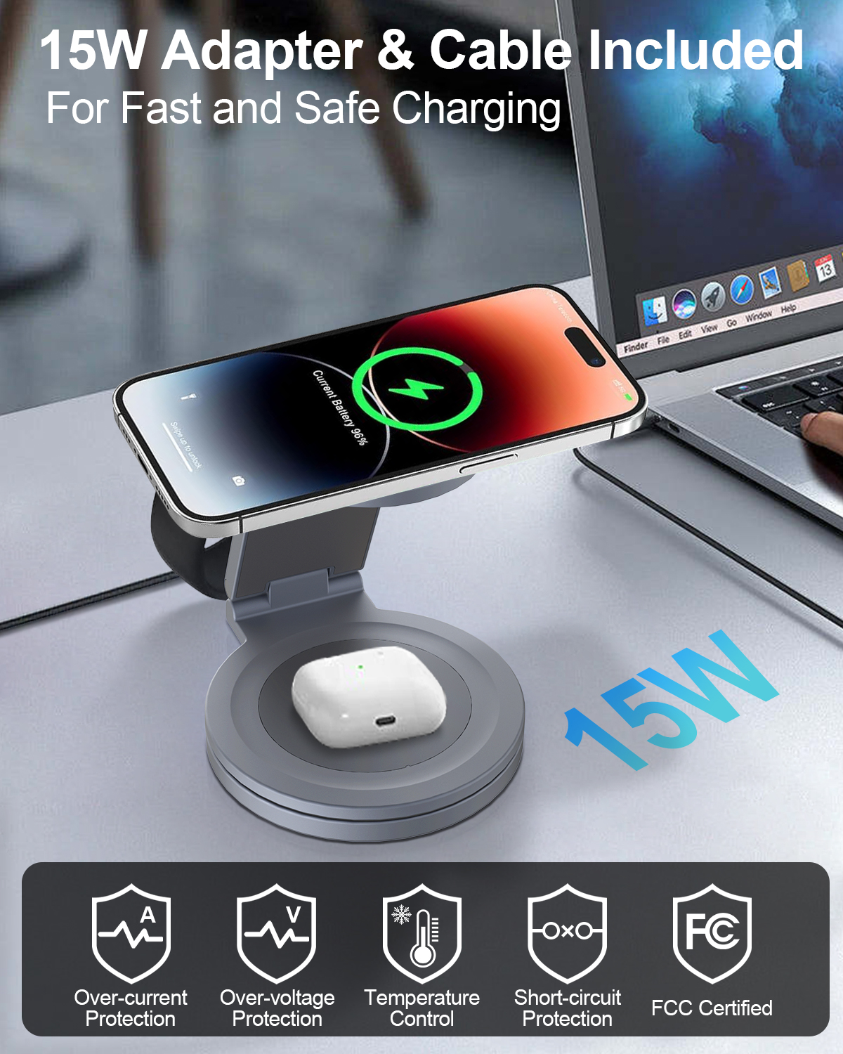 Crafted from durable ABS, zinc alloy, and magnets, the QI2 charger ensures reliability and longevity. Measuring a compact 98.3 x 24.7 x 95.8 mm and weighing just 389g, it easily fits on any desk or bedside table. The 360-degree rotation feature allows you to position your device for optimal charging convenience, making it easy to access your smartphone or other gadgets without fumbling. Plus, its stylish appearance complements any modern décor, enhancing the visual appeal of your space.